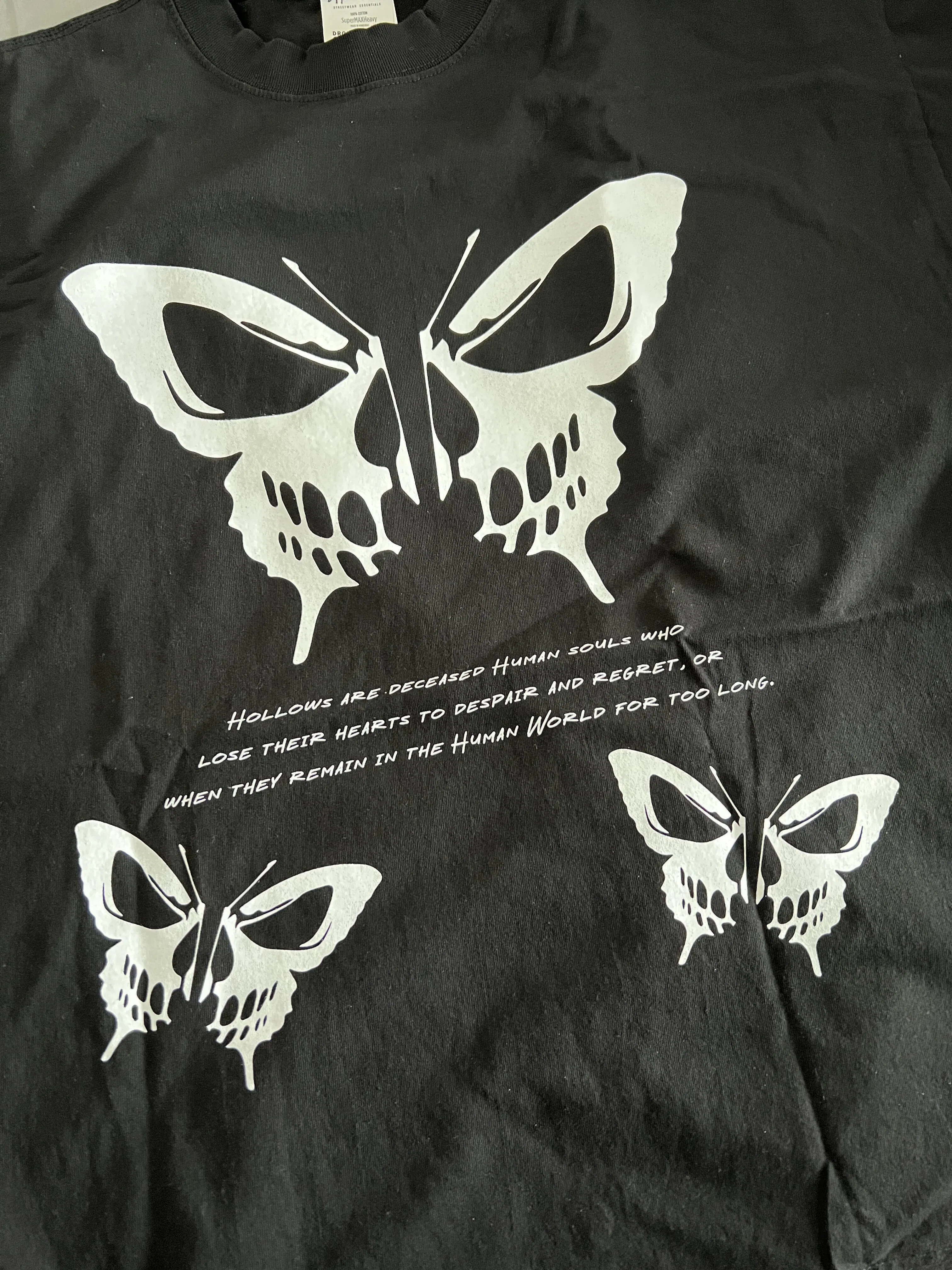 Introducing the Hollow Butterfly Tee Shirt, this heavy weight oversized black tee shirt not only does it strike fear in the eyes of soul reapers, it does so while looking elegantly.